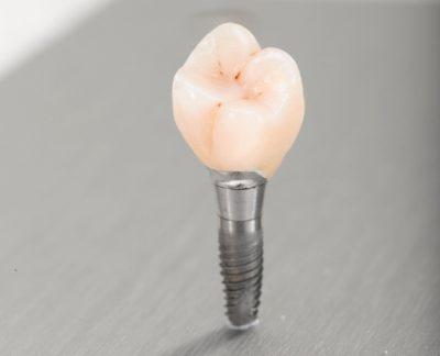 Comparable à une racine artificielle, l’implant dentaire est un petit objet cylindrique de la forme d’une vis qu’un chirurgien-dentiste fixe dans l’os maxillaire du patient. Deux a trois mois sont nécessaires à son intégration osseuse. Il remplace la racine de la dent perdue qui offre ainsi une base robuste pour accueillir une couronne, un bridge ou une prothèse dentaire amovible, et permettre au patient de mastiquer normalement et sans encombres.