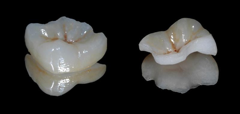 Dès lors que le volume d’une dent abimée est jugé moyen ou important, il est nécessaire de réaliser un inlay ou onlay, pièce en résine composite ou en céramique (anciennement en or) confectionnée par le laboratoire.